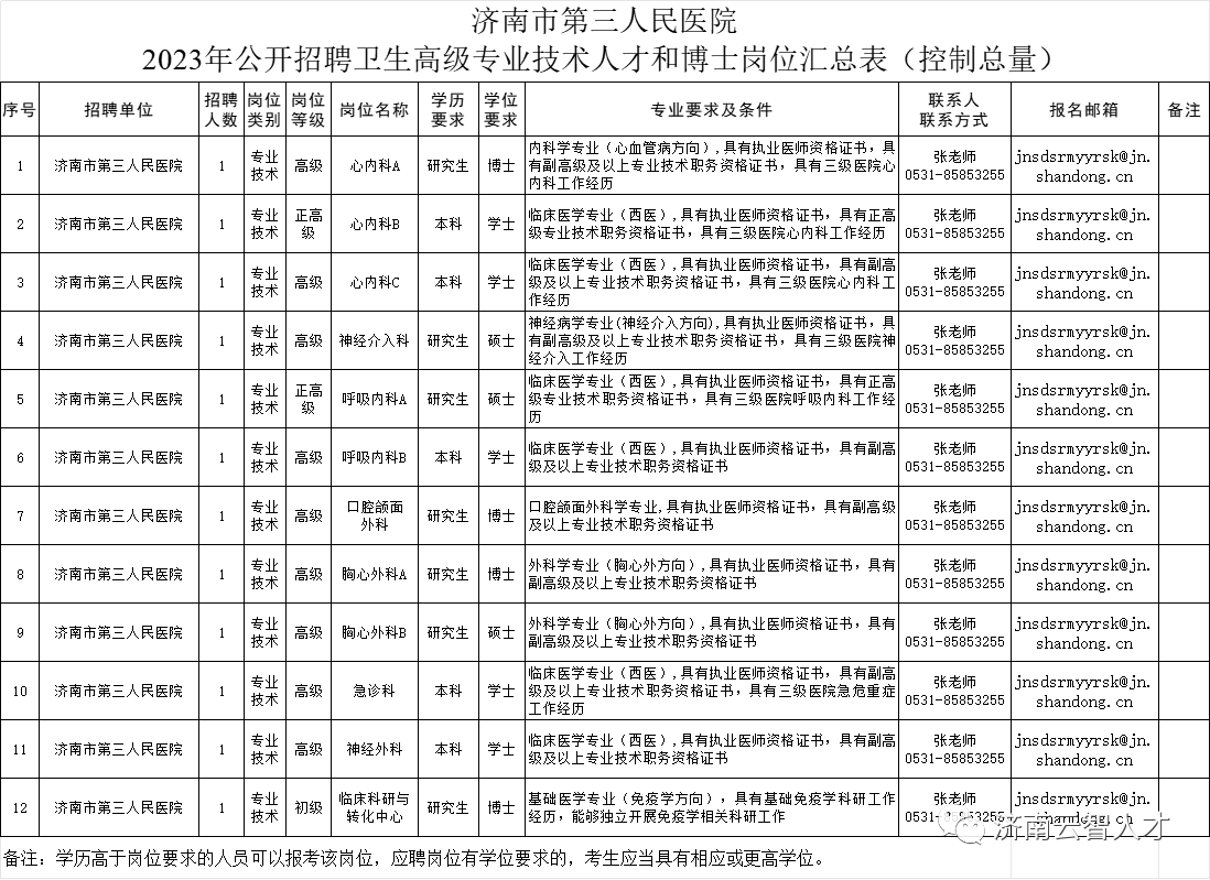 附件【附件1:济南市第三人民医院2023年公开招聘卫生高级专业技术人才和博士岗位汇总表(控制总量).xlsx】
